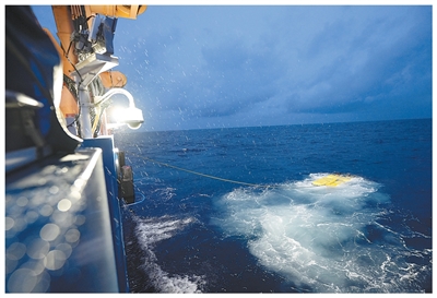 科研人员对6000米级深海无人遥控潜水器“海琴”号进行海试。